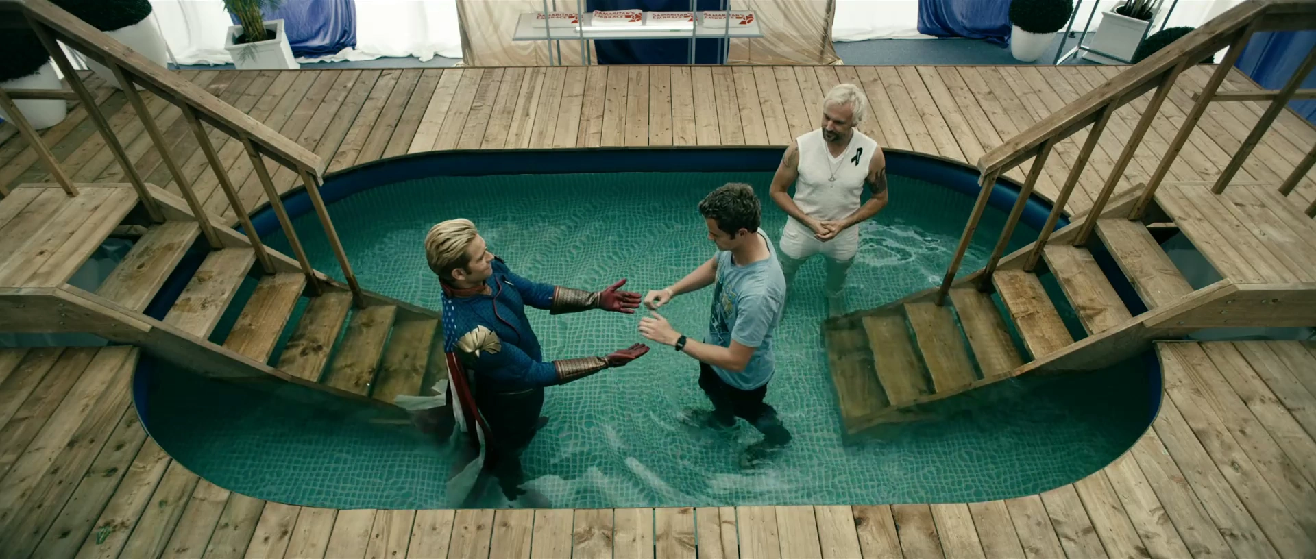 Lors de la rencontre avec Ezekiel, le Protecteur vient saluer Hughie et le questionne sur sa relation avec Stella. Ezekiel prend la parole et les invite à le suivre. Le Protecteur procède au baptême des VIP dont fait parti Hughie. Le Protecteur s'aperçoit que la pression artérielle de Hughie est élevée et celui-ci le justifie par une peur de l'eau. Le Protecteur le plonge dans l'eau et l'y maintient un moemnt. Après la cérémonie, Hughie tente de montrer la vidéo à Ezekiel mais son téléphone a pris l'eau. Hughie improvise alors en se basant sur ses souvenirs au club pour supers. Ezekiel l'attrape par le cou et l'accuse de mentir mais Hughie menace de diffuser une vidéo compromettante s'il meurt. Il l'interroge sur le composé V mais Ezekiel refuse de répondre par peur. Hughie continue de le menacer de diffuser la vidéo s'il ne lui répond pas et qu'il continue de prêcher contre les gays.